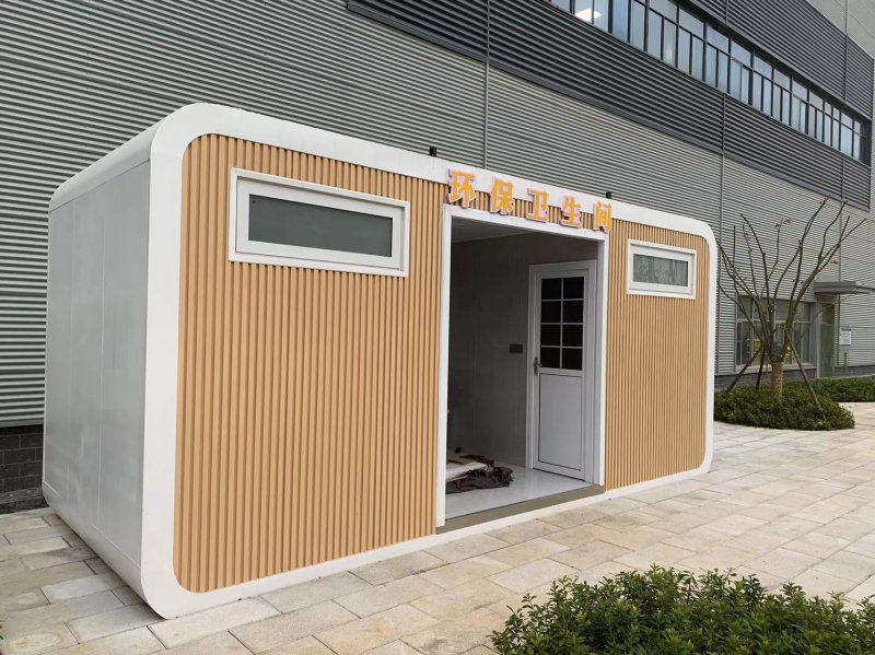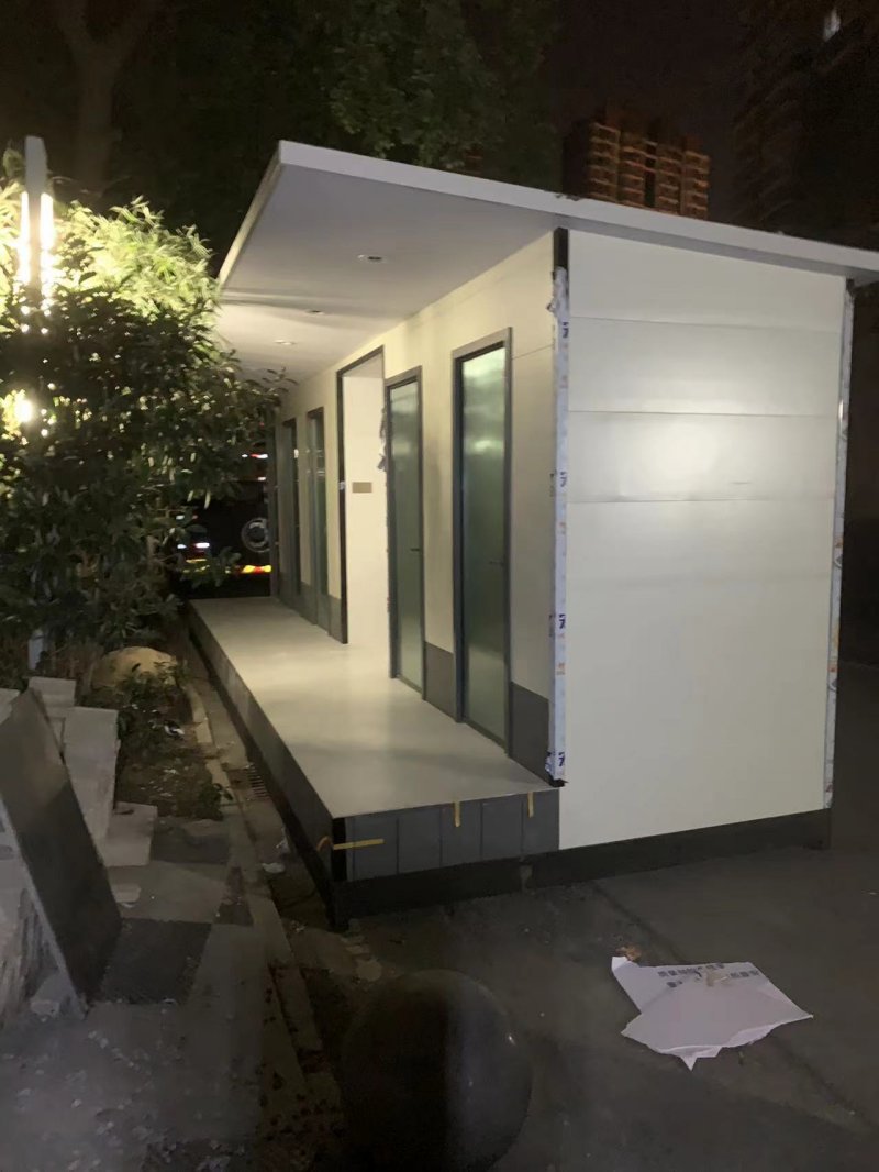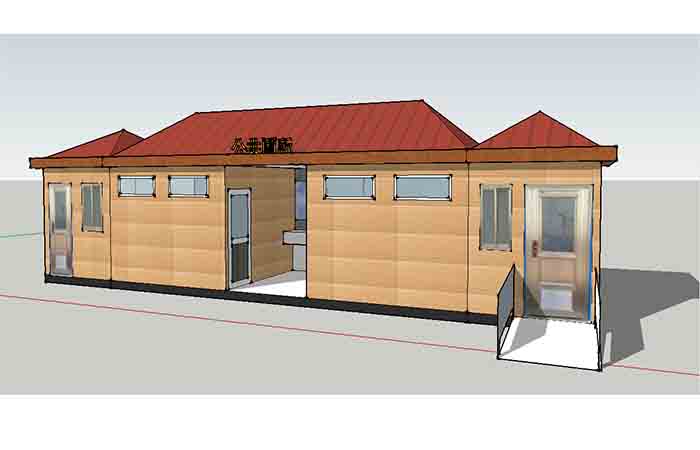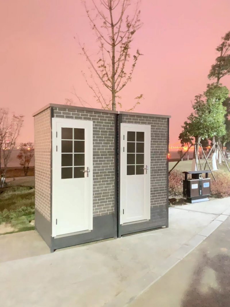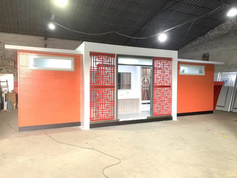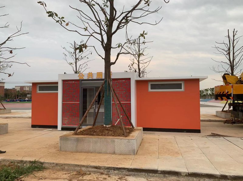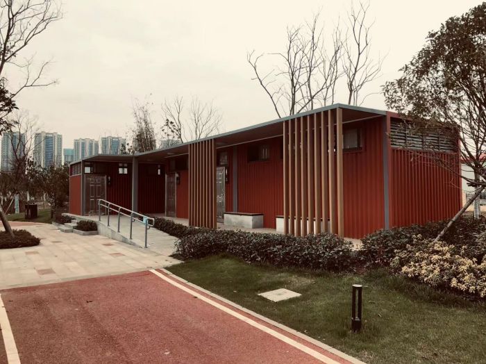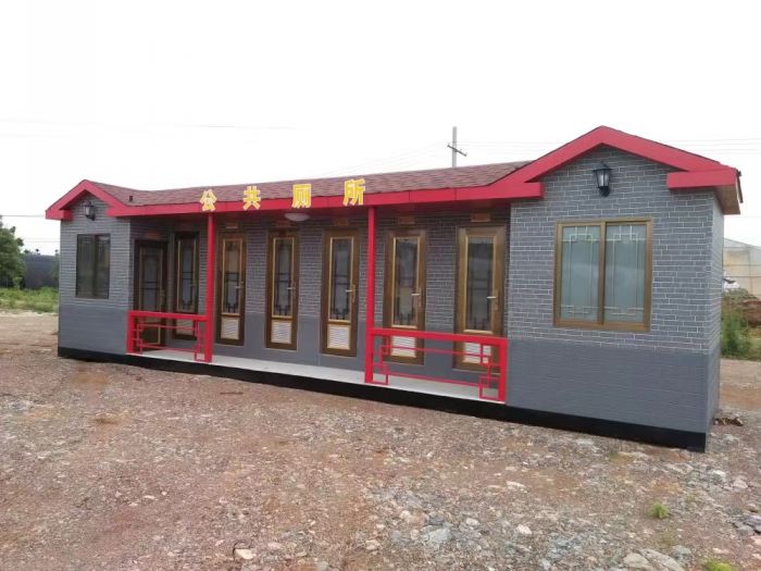 MORE拼裝廁所;在廠里做好各個(gè)廁所部件,再到現(xiàn)場組裝在一齊,適合不易運(yùn)輸?shù)拇笮蛶_@座箱式廁所,女廁5個(gè)蹲位內(nèi)配工具間,男廁2個(gè)蹲位+2小便斗,第三衛(wèi)生間由殘疾馬桶、助力洗手盆和兒童馬桶、兒童洗手盆外加?jì)雰号_等設(shè)施。廁所前后有窗,通風(fēng)采光,前部走廊裝有屋檐,防雨防曬。此廁所位于公路綠道邊,整體大氣,功能齊全,造型美觀,是一道難得的靚麗景觀!